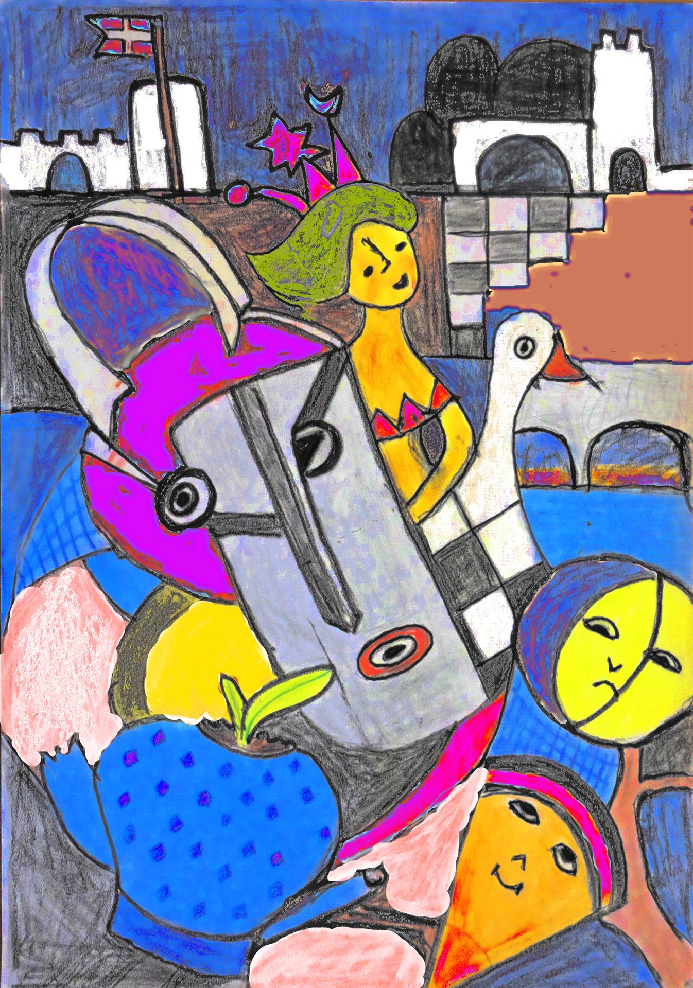 Wir experimentieren, kombinieren digitale mit analogen Techniken, malen digital, entwerfen neue Welten, verfremden Fotos, arbeiten gemeinsam und inspirieren einander.