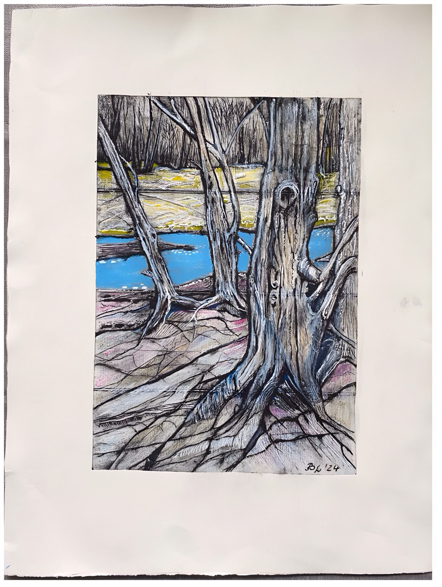 Im Kunsthaus Norderstedt ist unser Arbeitsraum, dort steht auch unsere Druckpresse. Mitunter arbeiten wir im angeschlossenen Garten.