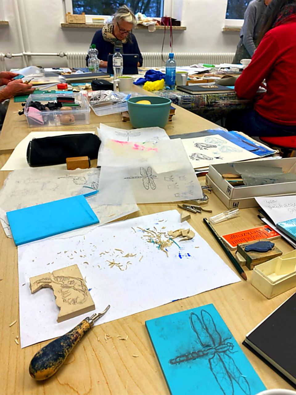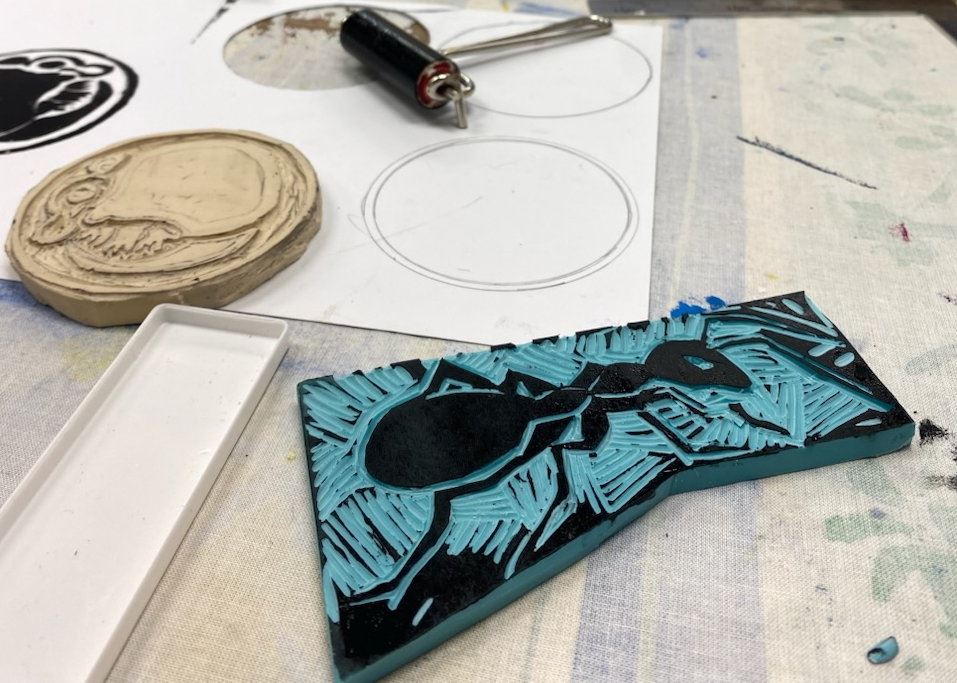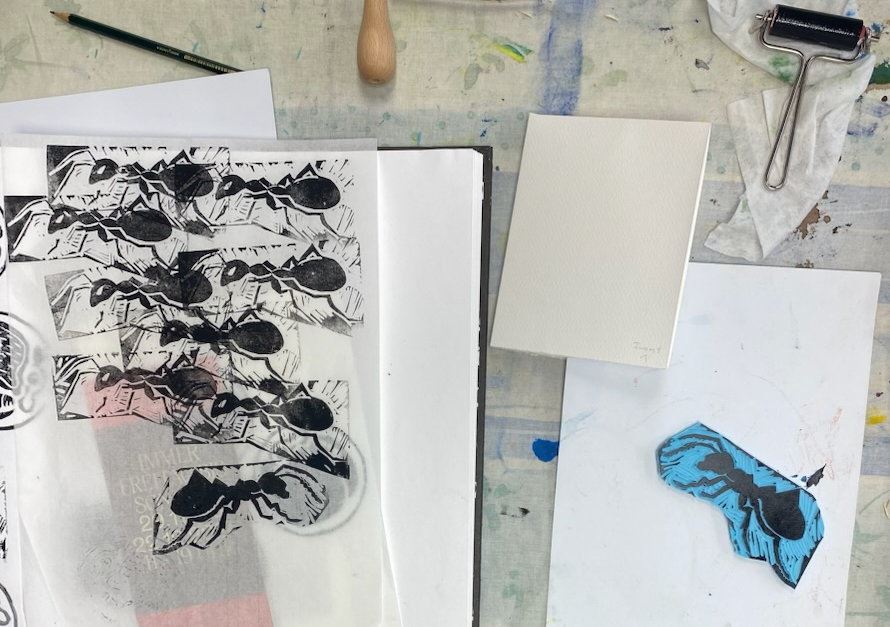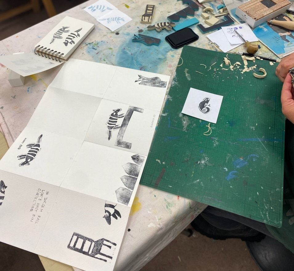 Von Freitagabend bis Sonntag war wieder eine wunderbare Zeit zum Kunst machen, diesmal die Herstellung kleiner Stempel aus Vinyl Print Block (dicker und weicher als Linol) .