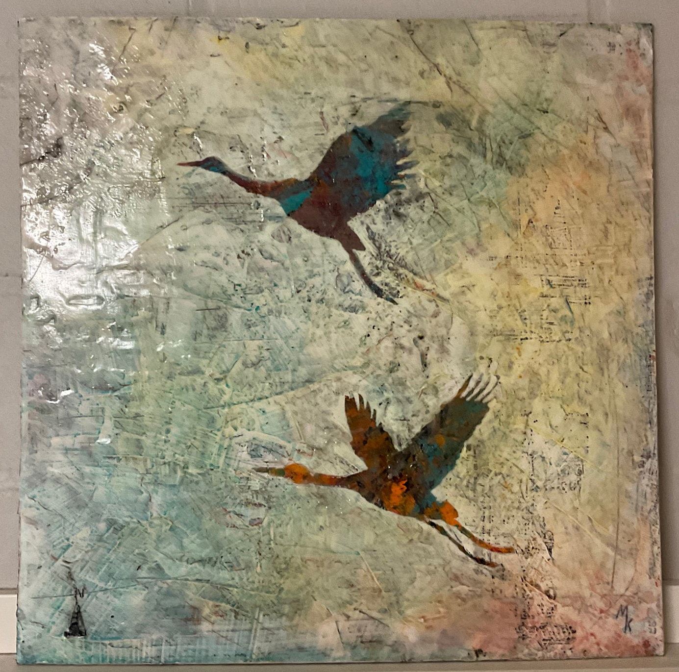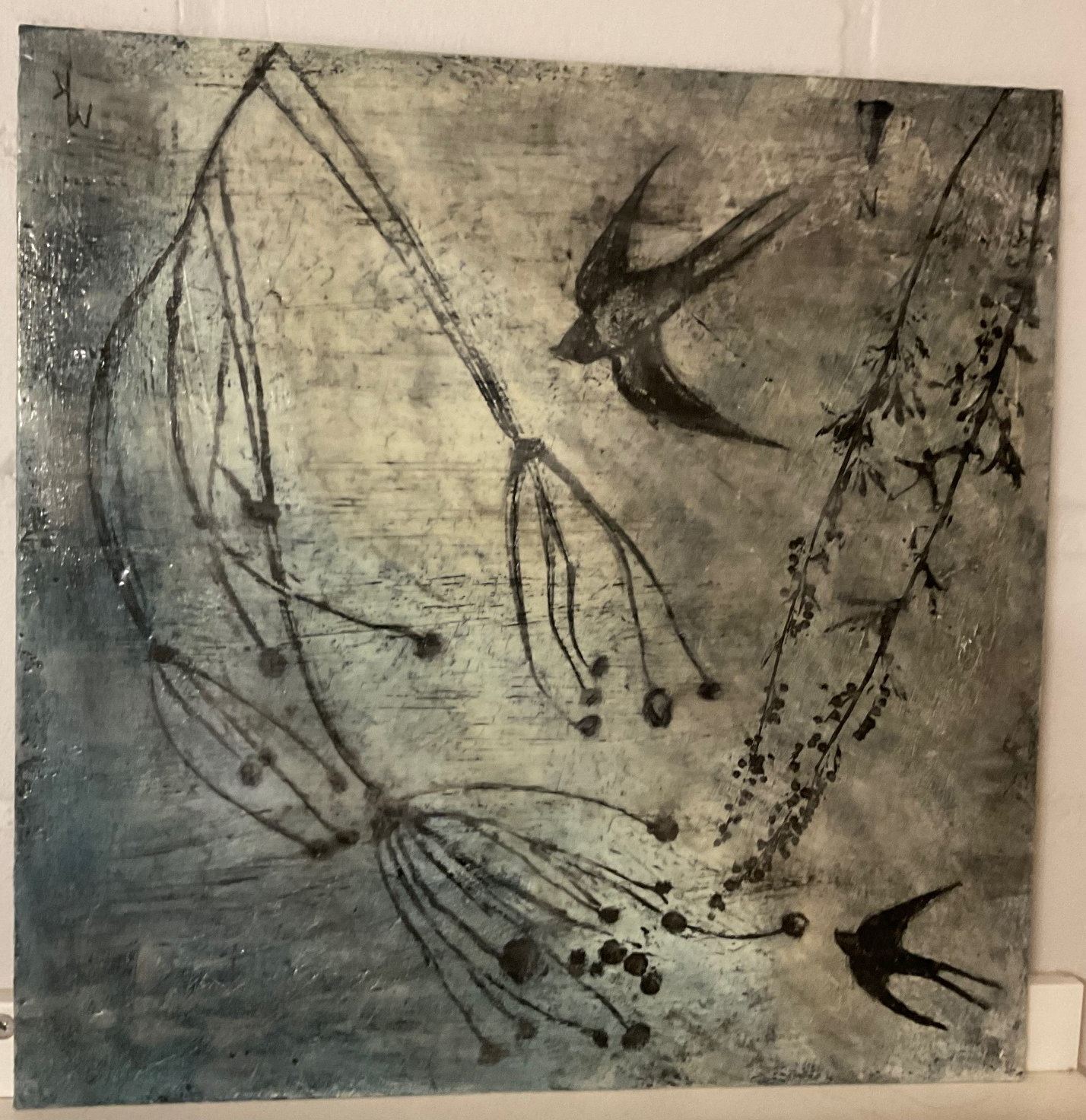 Wir experimentieren und probieren aus. Zum Beispiel: Encaustic, Pouring, Eitempera, Collagen.