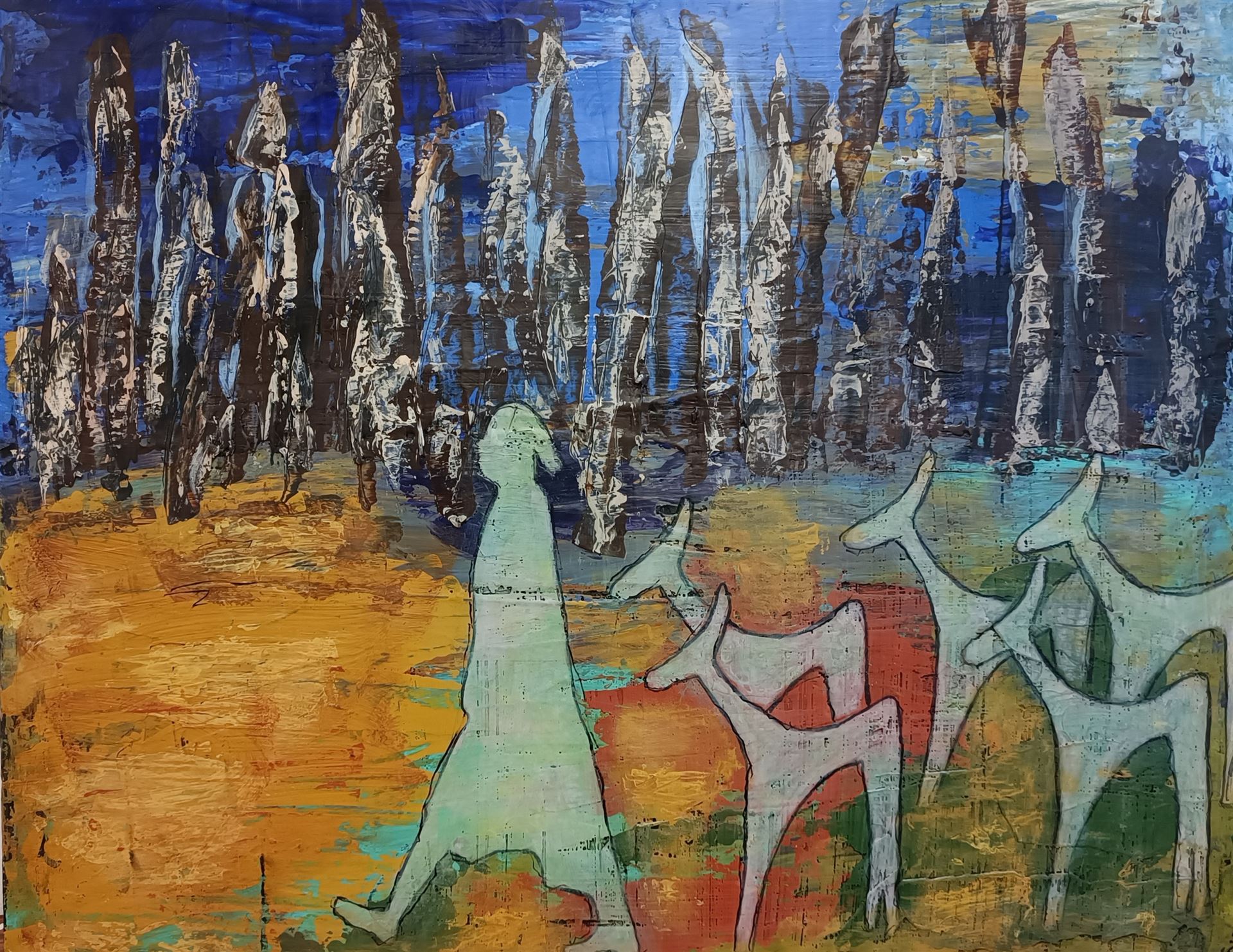 Mit Acryl, Aquarell, Gouache, Ölfarbe, Tusche, Kreide, Stiften usw. entwickeln wir unsere Werke.