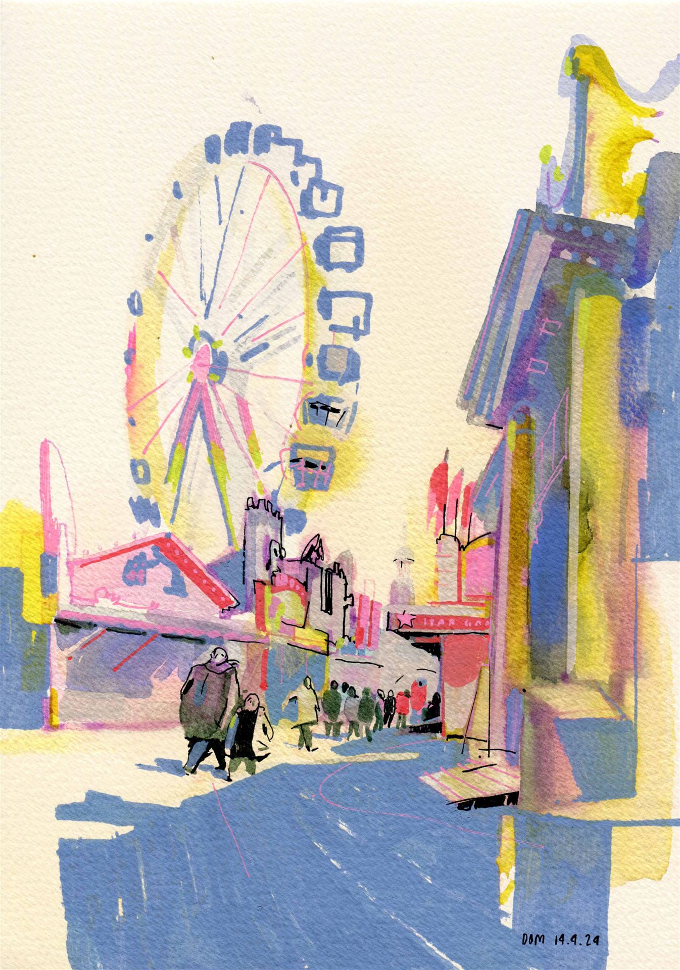 Zu Fuss erkunden wir die Stadt zeichnerisch durch kleine Übungen, die sich um Form, Farbe und Raum drehen. Dabei hilft uns z.B. Schnellzeichnen mit minimalistischer Linienführung um komplexe Motive zu vereinfachen. Das künstlerische Sehen wird geschult und dann aufs Papier gebracht, was man selbst wahrnimmt.