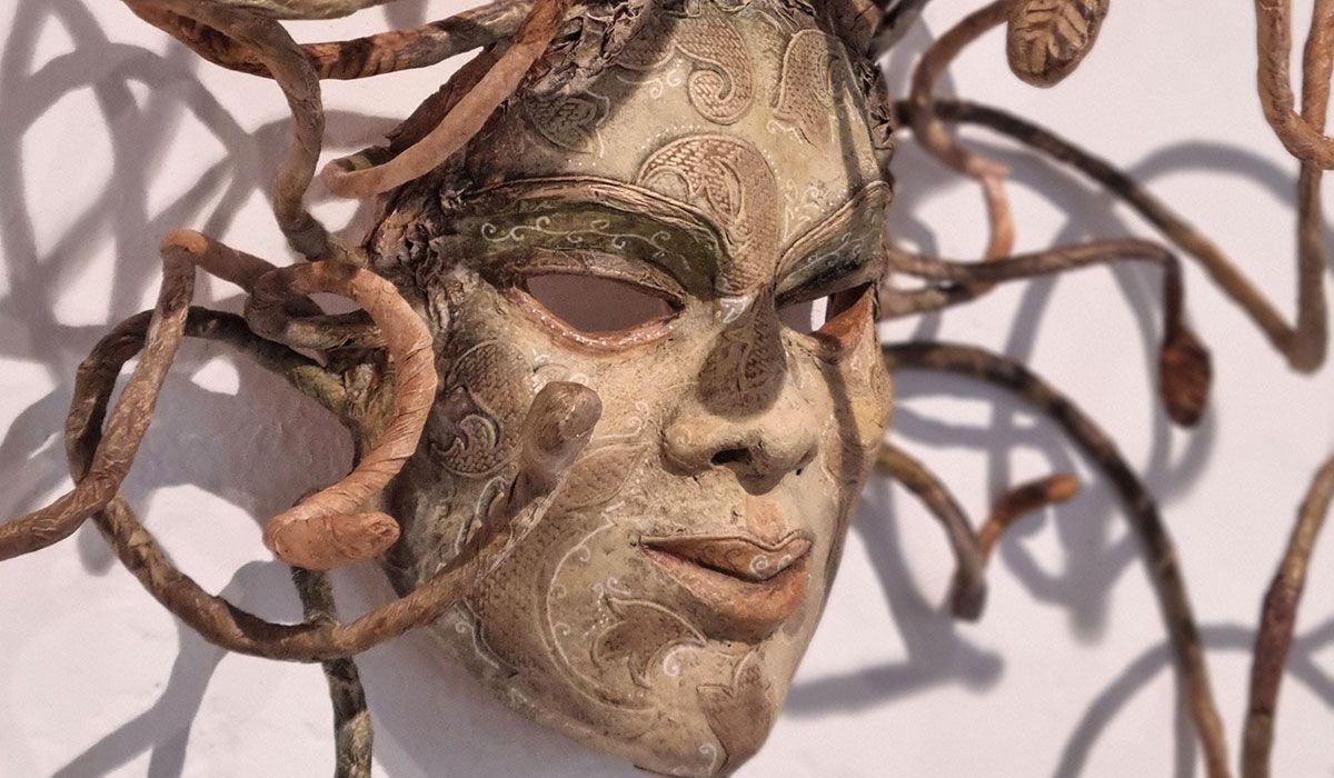 Im Anschluss widmen wir uns der kreativen Umsetzung einer ausdrucksstarken Wandmaske oder einer Kopfplastik. Für die stabile Unterkonstruktion nutzen wir Materialien wie Papprollen, Draht oder recycelte Genstände.
